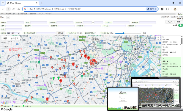 「PinMap」は低コストで高機能な顧客情報マッピングシステムです。高い汎用性で「業務効率を上げたい」「顧客の管理・分析をしたい」「地域や担当別の業績を評価したい」「外出先でも顧客の位置情報を知りたい」などあらゆるビジネスシーンでお使い頂けます。