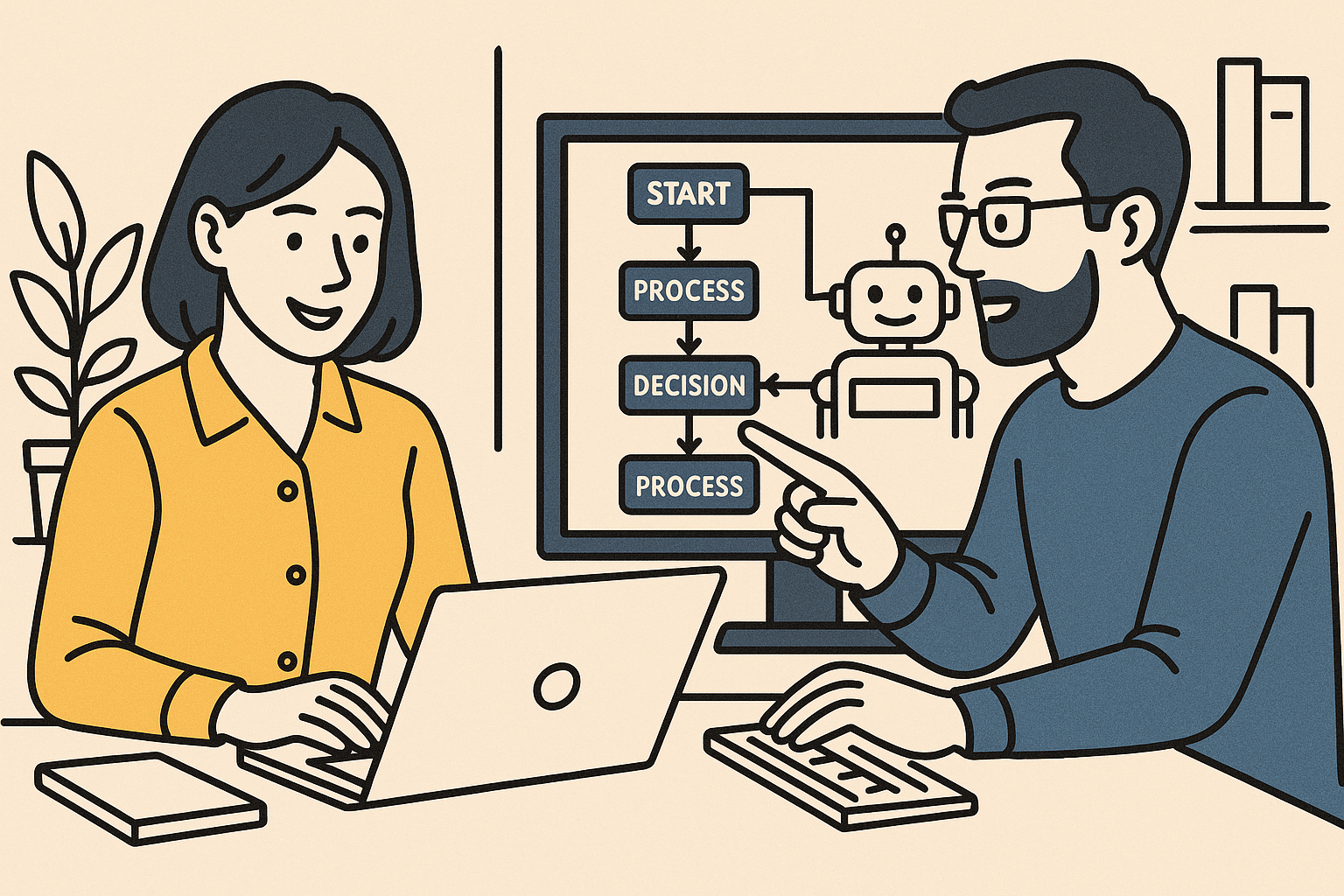 業務手順を整理し、ロボットが実行しやすい形に見直します。