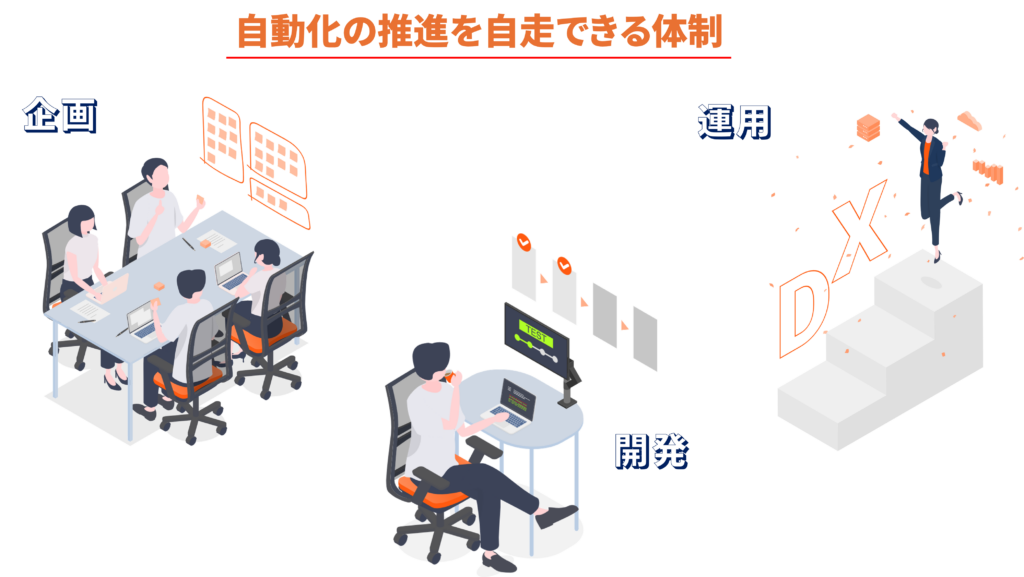 RPAの内製化とは、業務部門が主体となって自らロボットを企画・開発・運用します。