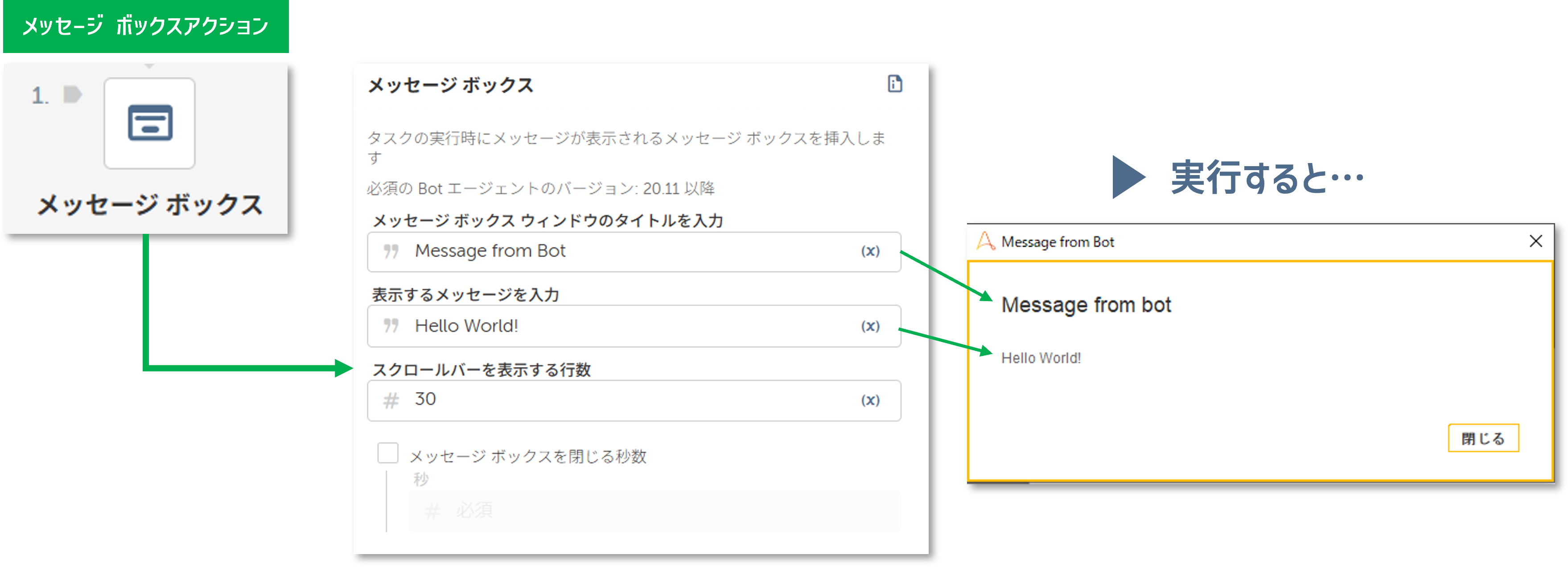 - Step2:アクションを配置して、プロパティを設定する
