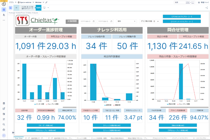 今回、Celonis Marketplaceに登録された「System Support Analysis Cockpit in ITSM CCPM」は、ServiceNowを用いたITSM業務における「オーダー管理」「問い合わせ管理」の効率的な分析に適したプラットフォームとなるように設計されています。本アプリは、STSがCelonisパートナーとして活動する中で得たさまざまなノウハウを多数組み込んでいます。