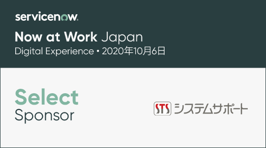 2020.9.17 お知らせ ServiceNow社主催オンラインイベント「Now at Work 2020 Digital Experience - Japan」セレクトスポンサーとして協賛
