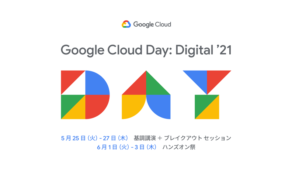 2021.5.6 お知らせ Google Cloud が開催するデジタル カンファレンス『Google Cloud Day: Digital ’21』協賛および登壇のお知らせ