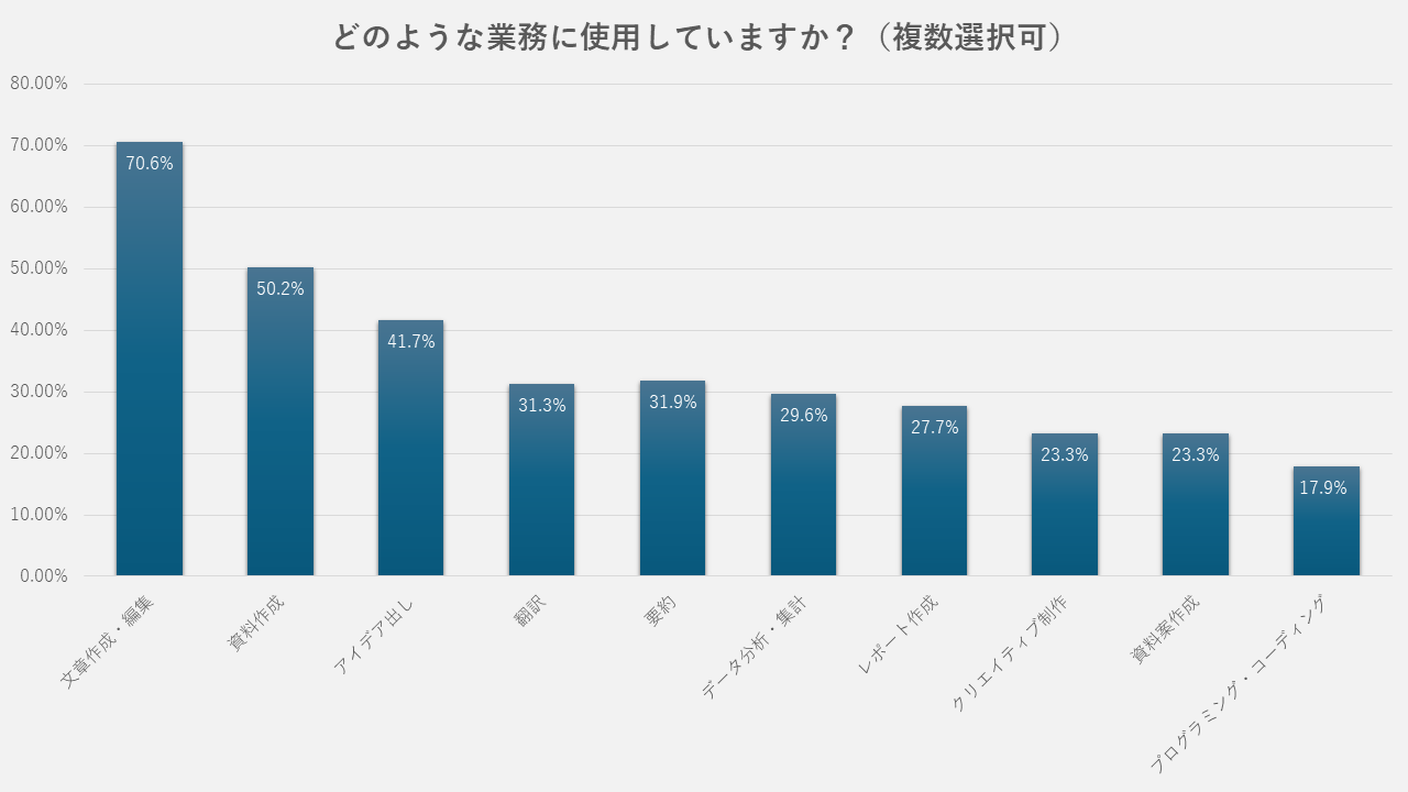 また、実際に活用している業務は次の通りです。
