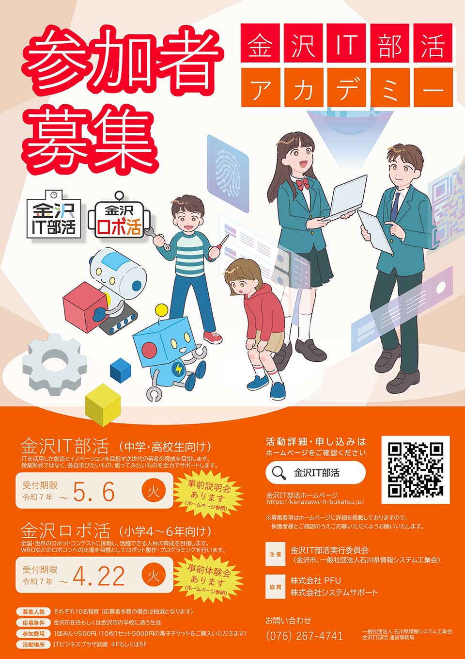 TOP お知らせ 金沢市のIT人材育成活動「金沢IT部活アカデミー」が2025年度新入部員の募集を開始