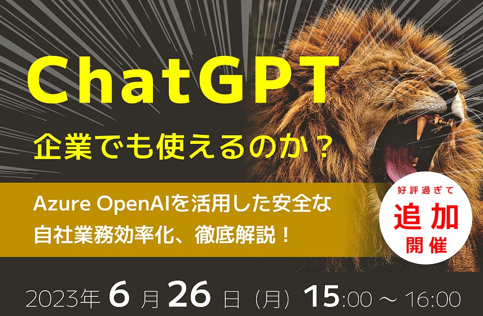| 内容 | 多くの組織で利用が始まっているChatGPT 高度なAI技術を備えたChatGPTは、これまでにない勢いで広がりを見せています。 すでに日本国内でも、ChatGPTを活用したサービスがいくつもリリースされており、スピード感をもって対応しなければ競合企業に後れを取ってしまう可能性があります。企業導入におけるセキュリティと運用の課題 しかし、企業がChatGPTを導入する際には、セキュリティリスクや運用管理の課題が避けられません。 入力情報の再学習への懸念や、業務外利用のリスクに対処する必要があり、自社への導入を決断することが容易でないということも、事実です。自社業務への適用とカスタマイズの方法 加えて、ChatGPTをどのようにして自社業務に役立てるのか、悩まれている方も非常に多く、導入の障壁となっています。 活用方法はもとより、自社特有の要件や制約も考慮しながらカスタマイズしていくにはどうすればよいのか。 ChatGPTは現状まだまだ情報が少なく、手探りで実現方法を模索しなければなりません。 Azure OpenAIにより、ChatGPTを企業でも安全かつ有効に活用 |