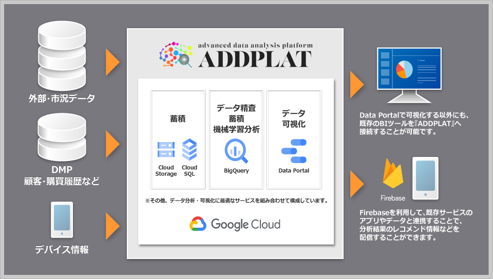 TOP お知らせ 次世代データ分析基盤「ADDPLAT」提供開始~Google Cloudのサービスを活用しデータドリブンなビジネスを実現~