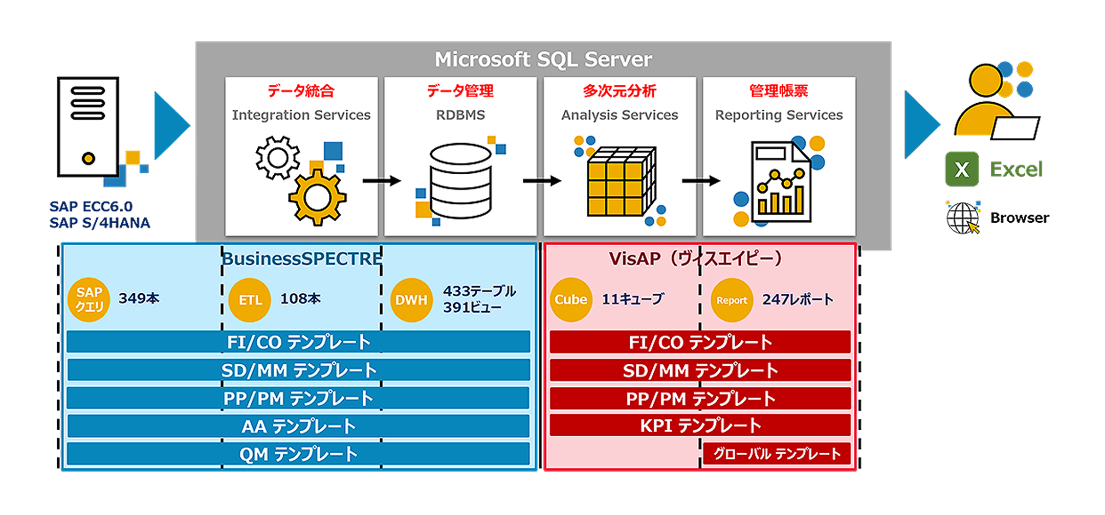SAPのデータ活用に強みを持つ製品「BusinessSPECTRE + VisAP」の導入、構築も支援しております。