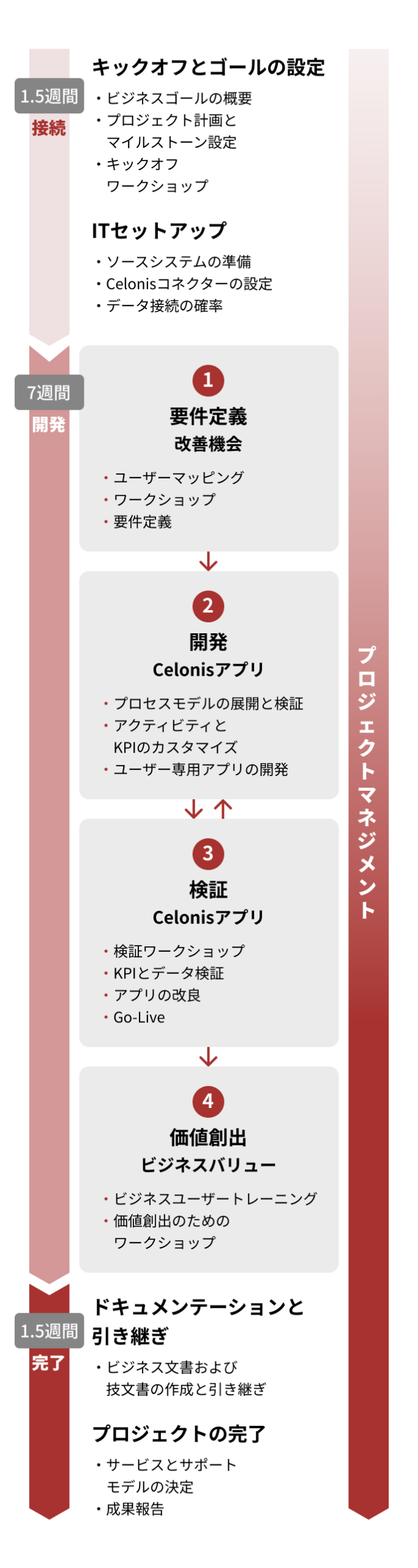 Celonisの導入にとどまらず、価値創出や導入後のCelonis活用の継続的なご支援が可能です。