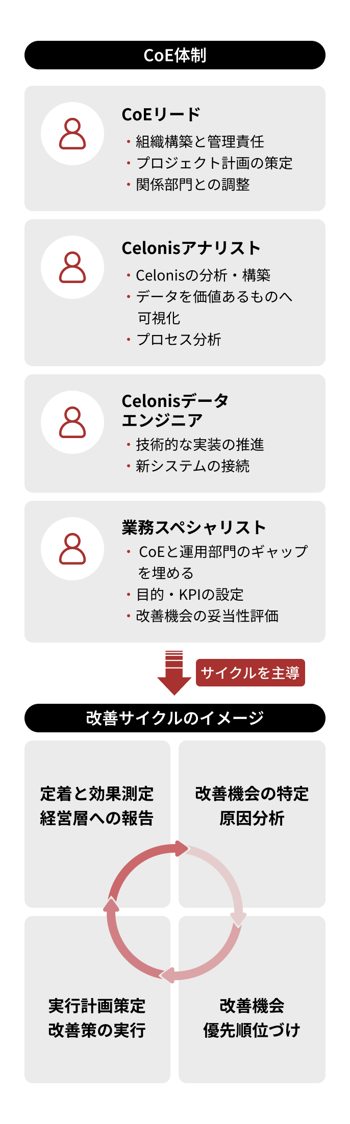 - オーナー組織の意向に沿いながら、成果を挙げるためのCelonisを利活用する組織の設計·支援も実施