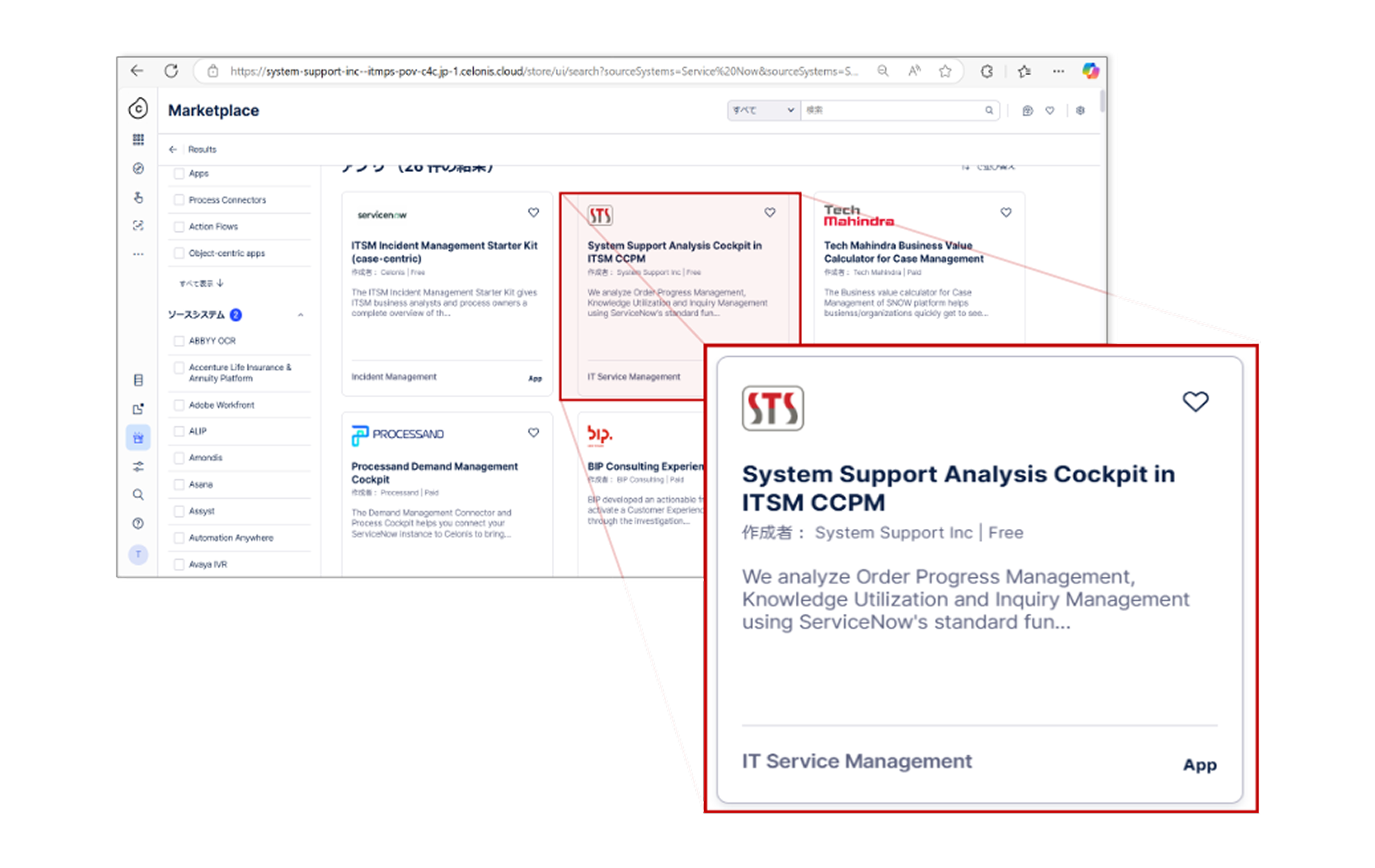 2025年2月、Celonis Marketplaceに「System Support Analysis Cockpit in ITSM CCPM」が、日本で初めて登録されました。