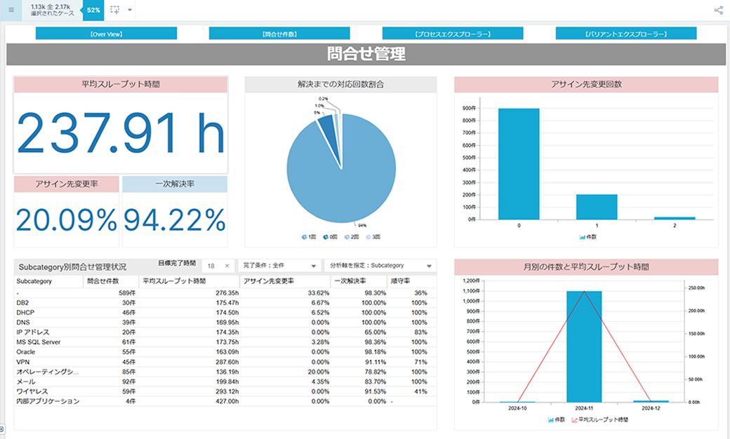 長時間対応や担当者変更の傾向を把握し、迅速かつ適切な対応を実現します。