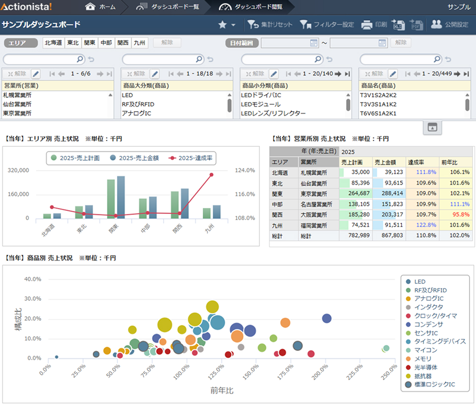 Actionista! セットアップ、キューブ作成(1キューブ/データソース10)、ダッシュボード作成(5シート)