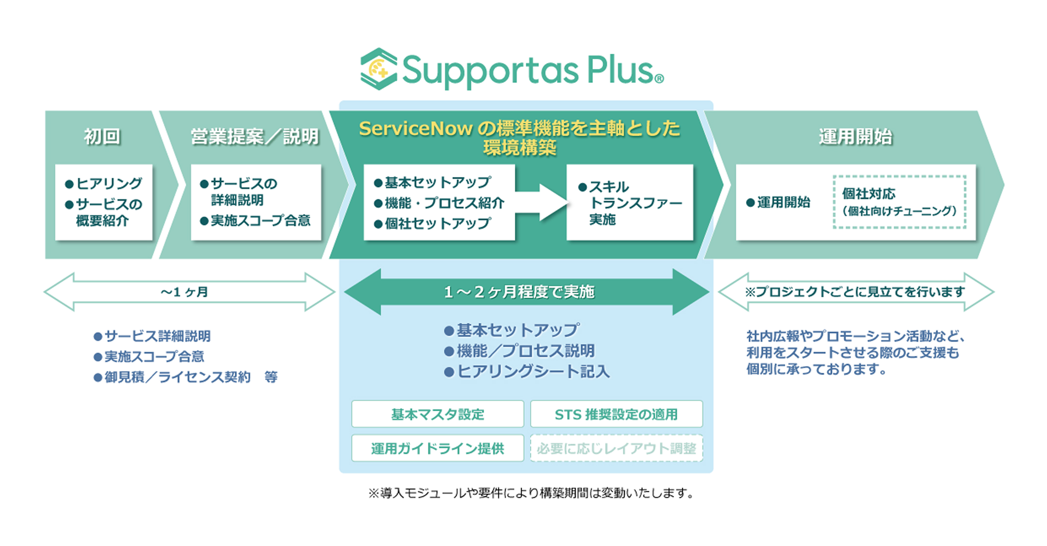 Supportas Plus を利用した ServiceNow 導入までの流れ(イメージ)