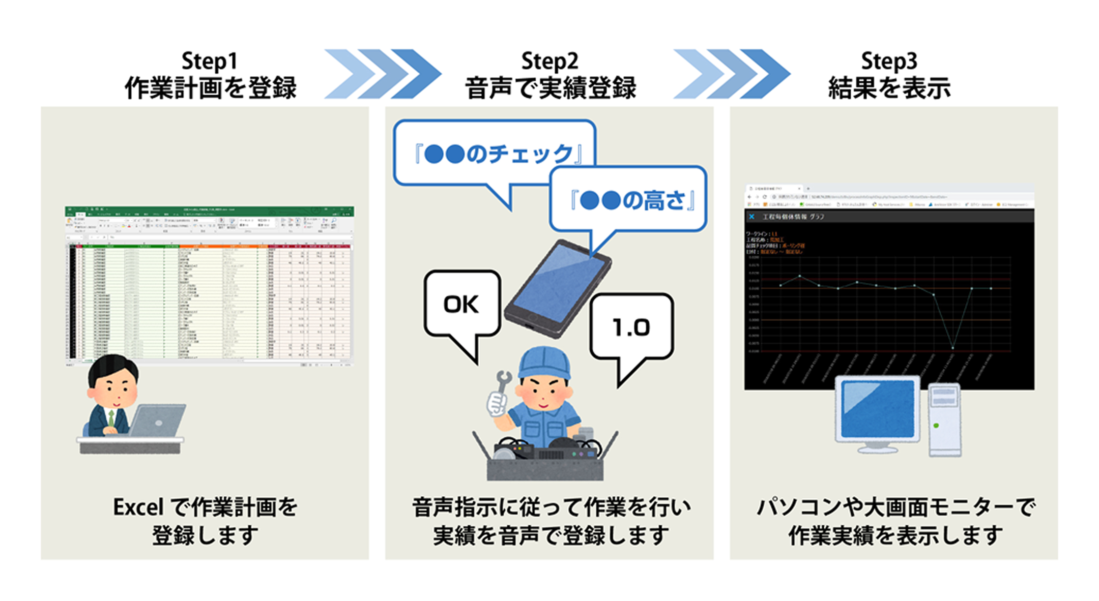 • 音声指示に従い作業を進めるため、作業忘れ/確認モレを防止