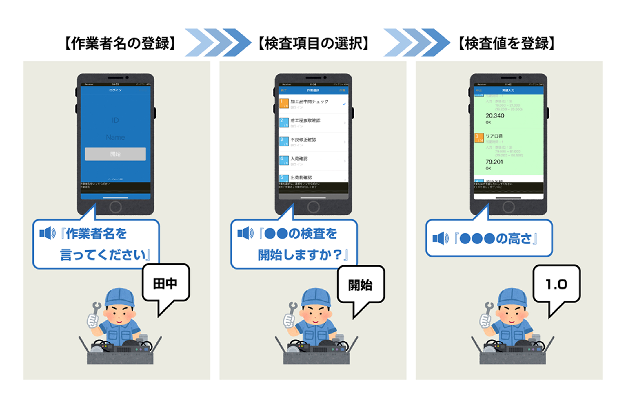 • 作業結果を音声で入力することで手を止めずに簡単に作業が可能です